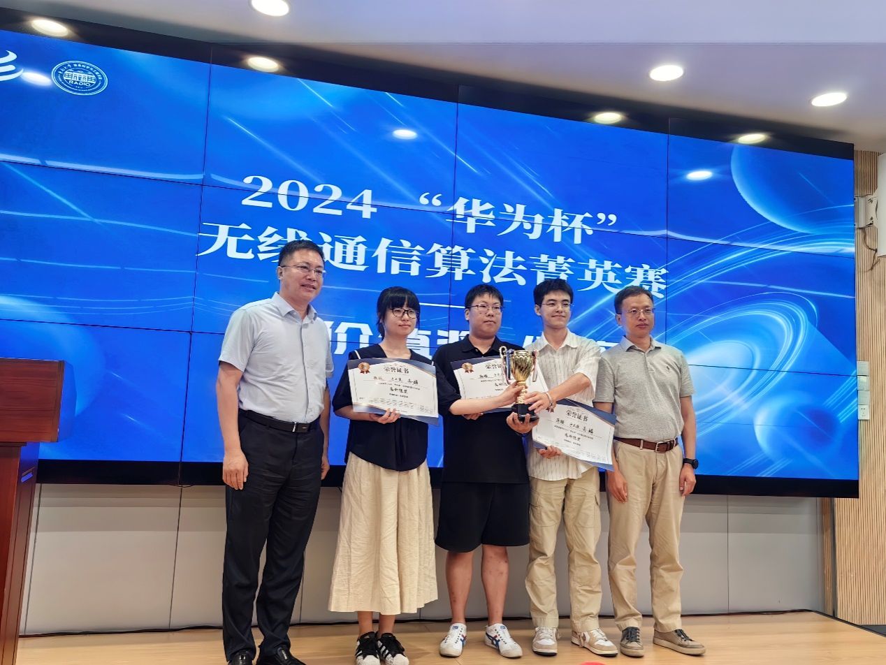 2024年9月7日, 2024“华为杯”无线通信算法菁英赛颁奖典礼在东南大学举行,本次大赛由东南大学和华为联合主办。beat365英国官方网站通信学院的五支团队在比赛中表现优异,特别是徐树公教授、高塬老师指导的三支队伍包揽前三名。其中,由艾志奇、潘广进、段欣玥同学组成的信道小分队在全国总决赛中斩获总冠军,由蒋骏、高一麟、于文俊同学组成的信道无线队凭借其创新的算法设计,荣获高价值奖,展示了卓越的创新能力与技术实力。