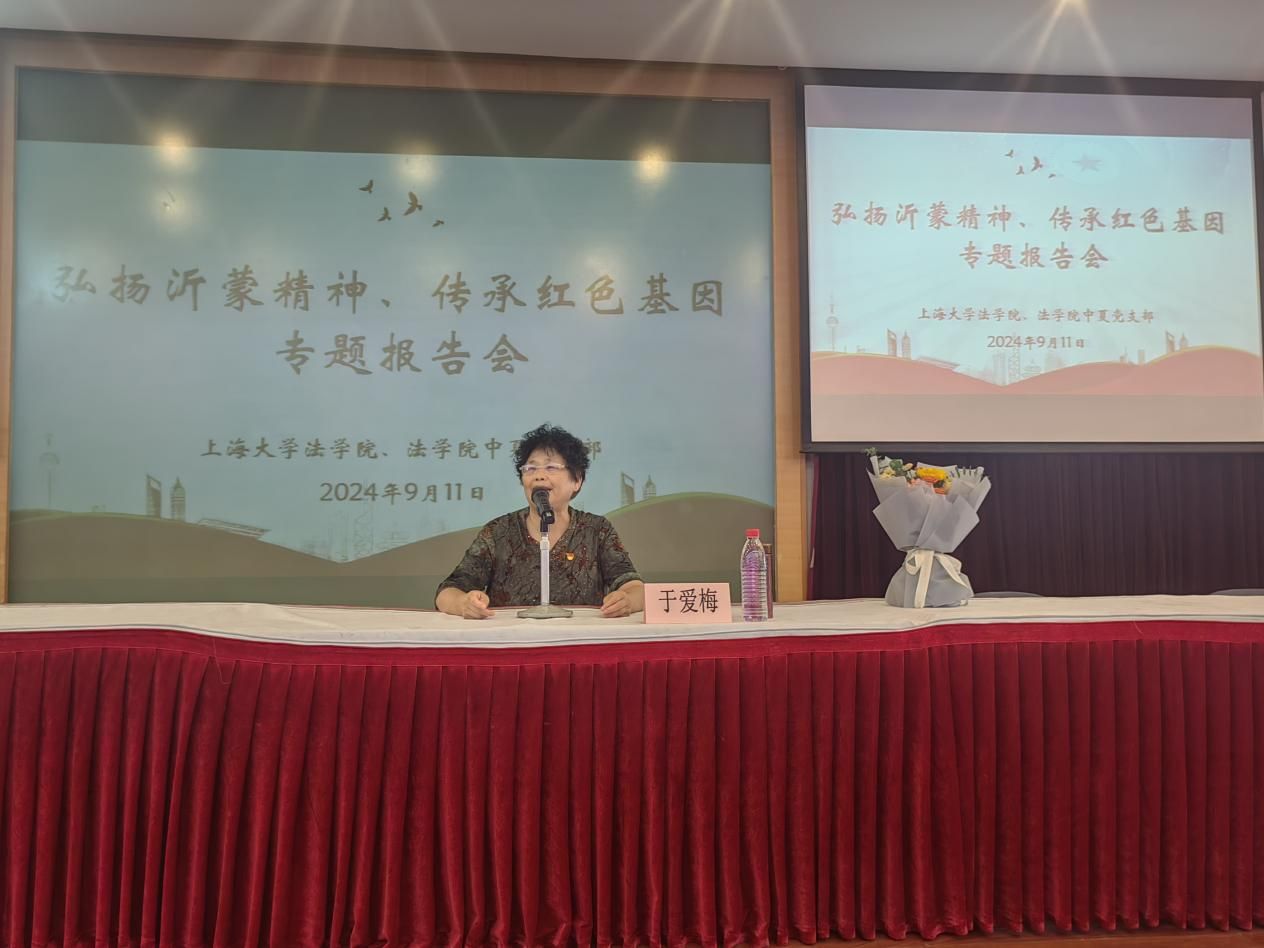 习近平总书记视察山东时指出,要保护和运用好红色资源,大力弘扬沂蒙精神,推动红色基因代代相传。为了积极贯彻落实党中央号召、深入学习和弘扬沂蒙精神,9月11日下午,beat365英国官方网站法学院、法学院中夏党支部特别邀请沂蒙精神传承促进会会长、全国最美拥军人物、中国好人、山东省劳动模范于爱梅老师带来“弘扬沂蒙精神,传承红色基因”专题报告,临沂市政府办公室四级调研员、机关党委副书记李景昊,来自法学院、材料学院、环化学院、生命学院、上大附小等单位师生近200人参加了报告会。