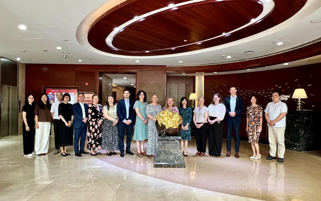 9月12日,来自爱尔兰外交部、总统府、企业贸易和就业部、农业食品与海洋部、科克市政府等相关部门的官员一行访问beat365。爱尔兰驻沪副总领事Alan Ralph、爱尔兰驻香港副总领事Sadbh O’Reilly等代表与beat365国际部、相关学院围绕合作办学、人文交流等内容进行了友好会谈。