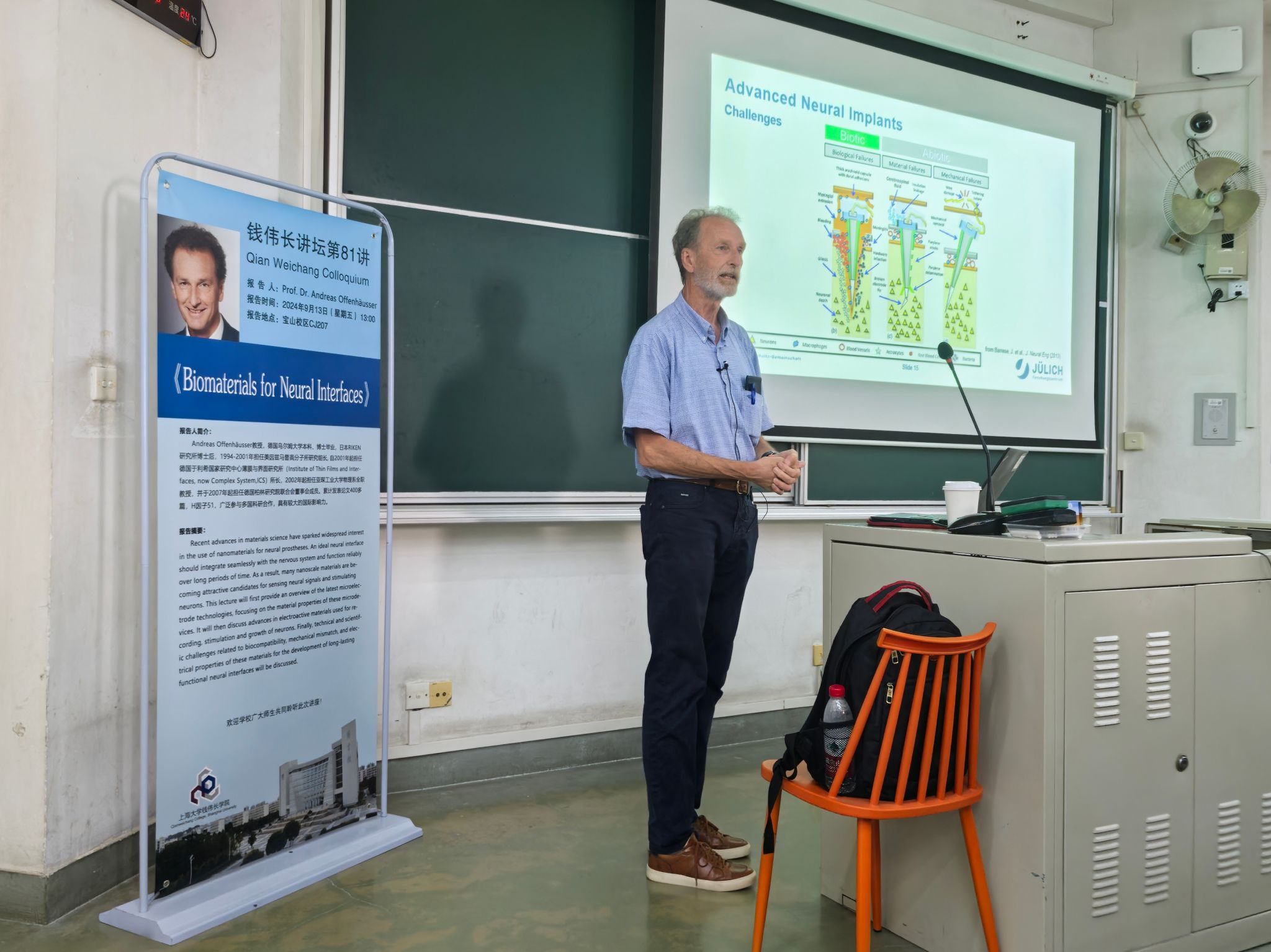 9月13日下午,钱伟长讲坛第81讲《Biomaterials for Neural Interfaces》在beat365英国官方网站宝山校区CJ207会议室顺利举行,德国亥姆霍兹联合会-于利希研究中心Andreas Offenhäusser教授应邀作主题报告,活动由钱伟长学院党委书记冯凌燕教授主持。