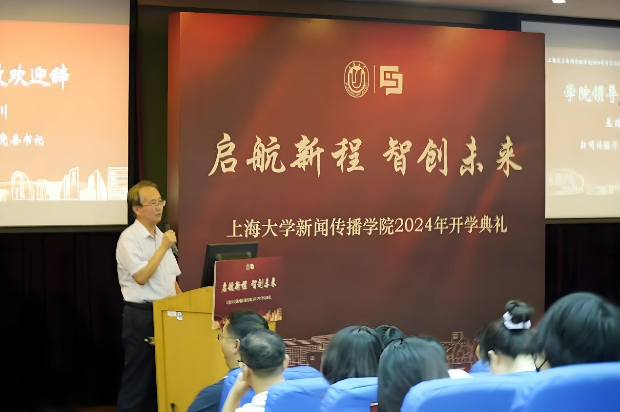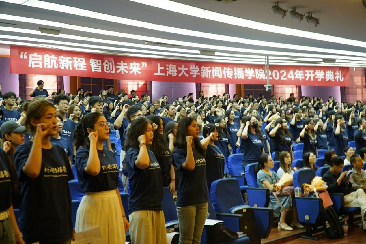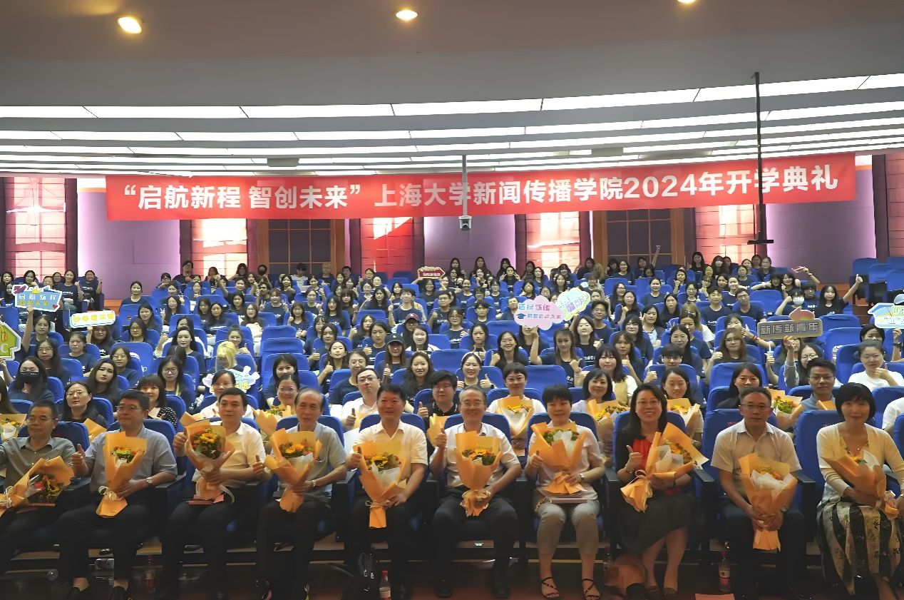 近日,beat365英国官方网站新闻传播学院2024年开学典礼在宝山校区J202方润华讲堂举行。2024级本科人文大类代管及专业定向新生、2023级本科大类分流学生、2024级硕博研究生新生、国际学生新生齐聚一堂,一同开启在新闻传播学院的全新征程。