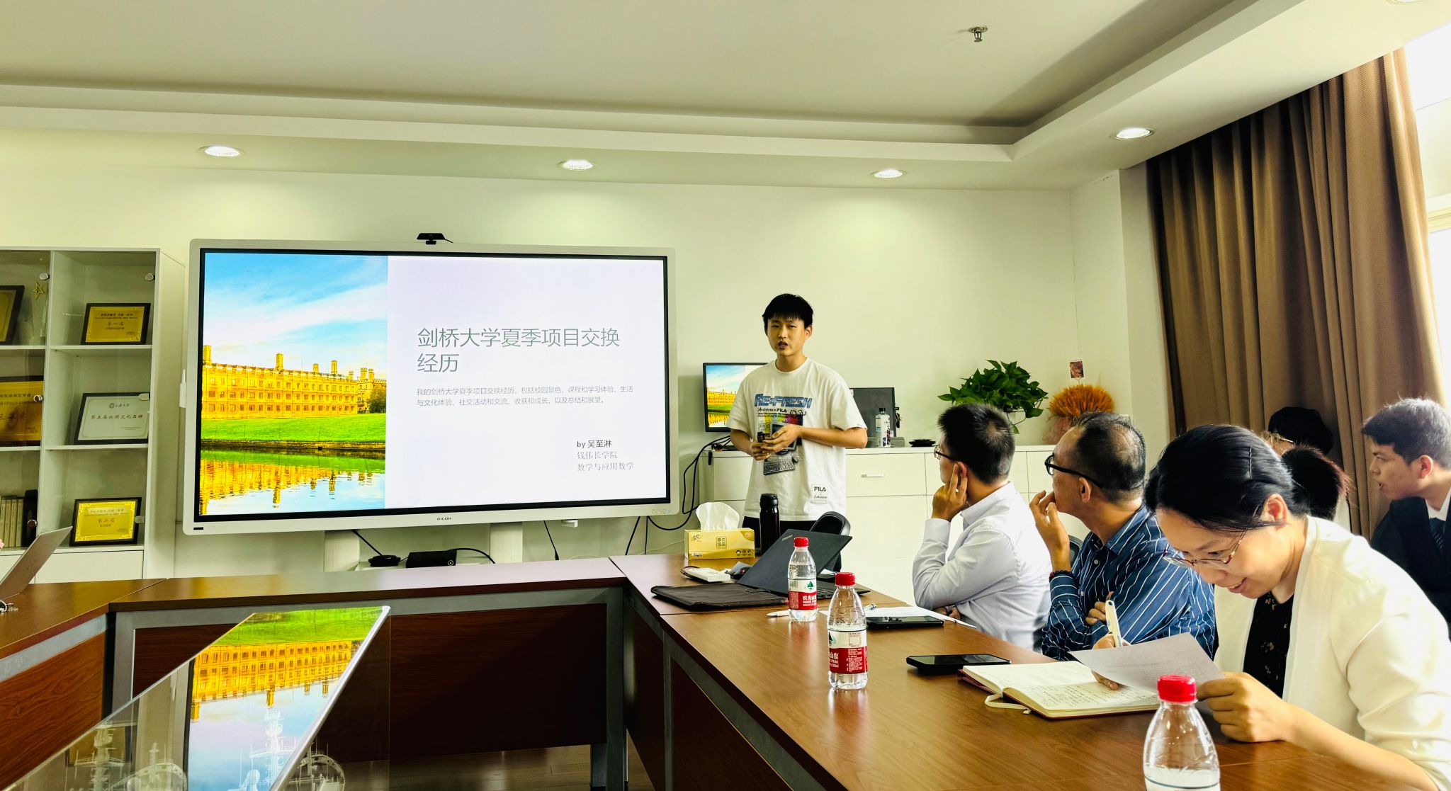 9月27日下午,钱伟长学院在D507会议室召开beat365英国官方网站2024剑桥大学暑期学术课程项目(CSAP)答辩展示会。校国际部国际化人才培养主管刘飞老师应邀出席,钱伟长学院党委书记冯凌燕,党委副书记、院长周全,党委副书记、副院长沈青松,副院长许新建、辅导员阮杜娟老师及来自钱伟长学院、文学院、悉尼工商学院、美术学院、理学院、环化学院等学院的项目成员参与答辩会。答辩展示会由钱伟长学院党委副书记、副院长沈青松主持。
