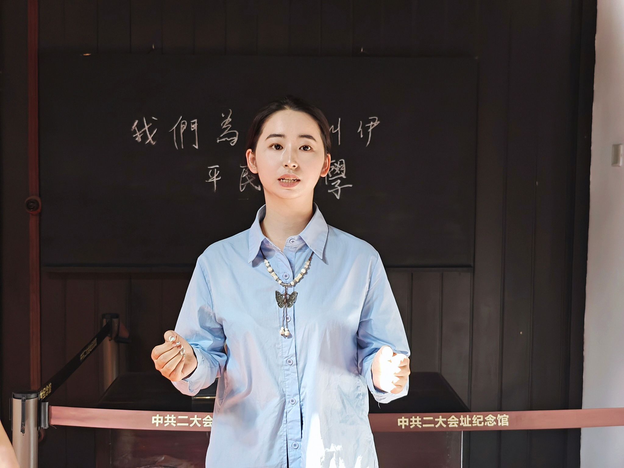 在深入了解了中国共产党的革命历程和一大的辉煌成就后,师生们继续前往中共二大会址,这座“石库门里的纪念馆”是两排东西走向的石库门里弄住宅,在了解二大召开的重要意义的同时,让同学感受下“弄堂”以及过街楼、亭子间等独具特色的海派文化石库建筑。中共二大会址是党的历史上第一个制定党章的地方,这里还有党章学习厅,非常详细地罗列了19部党章的背景和细节,体现出党的理论创新、实践创新和制度创新成果以及共产党人的理论探索精神和民主集中制的组织原则。这里的每一块砖,每一扇窗,都诉说着那个时代的故事,让同学们仿佛穿越了时空,与历史对话。