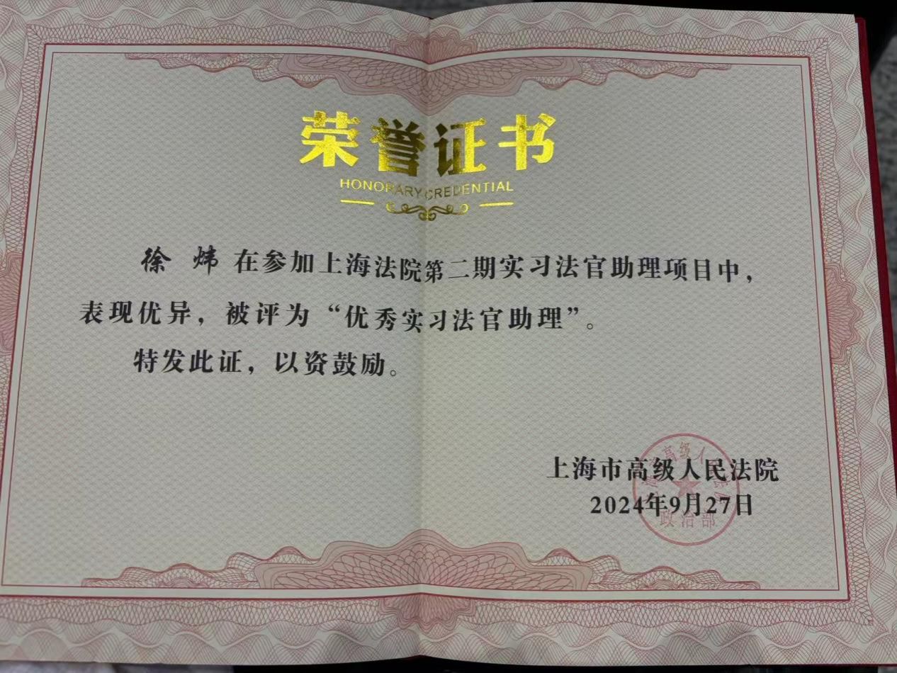 在宝山法院的这段实习体验,学会了很多受用一生的经验和知识,相信带着这些知识会在未来给自己带来更多的帮助。非常开心能有这次跟法院零距离的接触机会,并且能得到带教法官老师和带教助理老师的诸多帮助,今后会带着这些宝贵的经验继续法律领域探索。