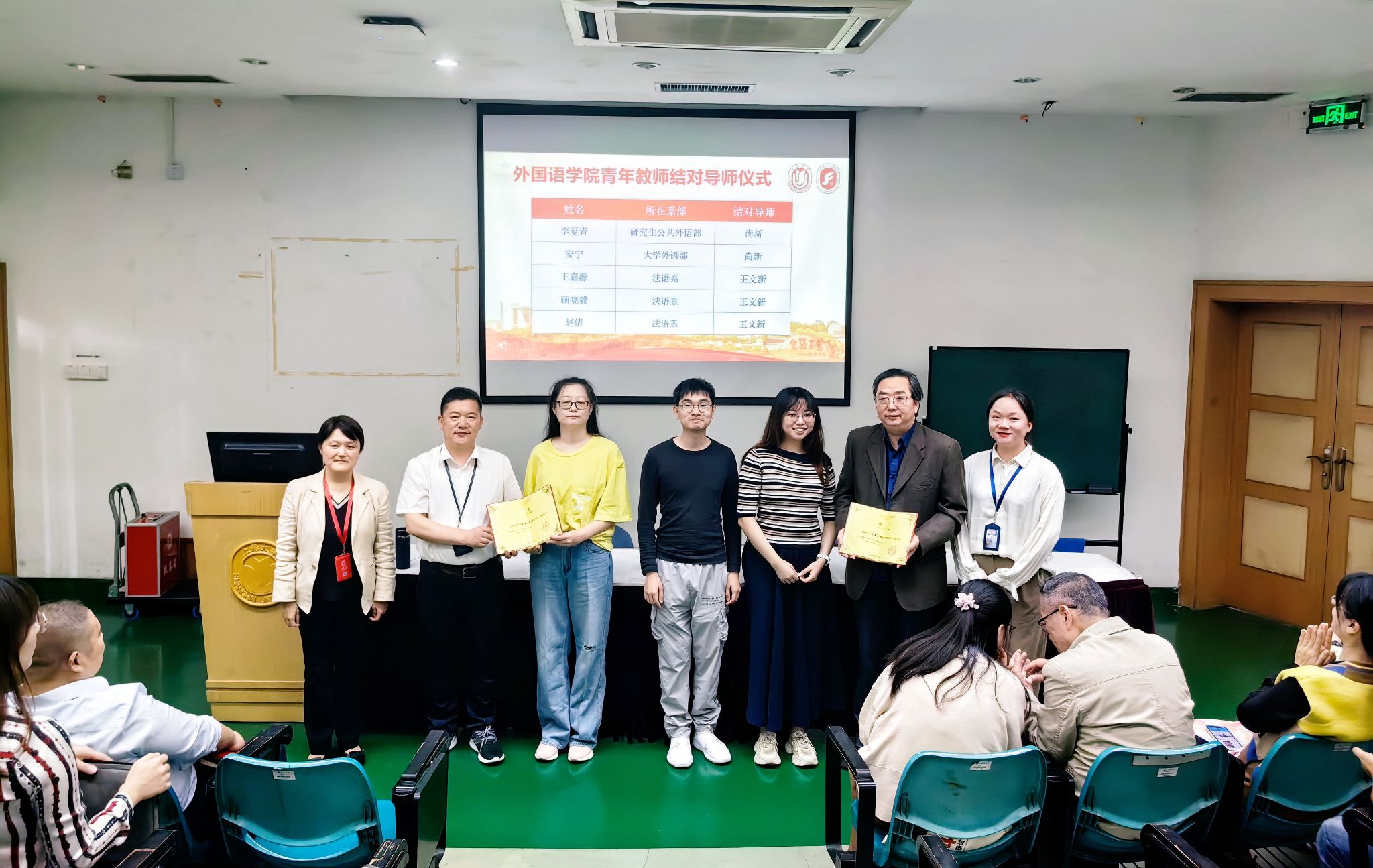 接下来进行的是学院青年教师结对导师仪式。青年教师传帮带制度是学院的优良传统,为加快教师队伍建设,构建教师成长共同体,学院制定《外国语学院青年教师培养方案暨青年教师传帮带制度》,前辈导师悉心指导青年教师教学及科研的各个环节,帮助和指导他们做学生为学、为师、为人的示范,近五年学院及各系部已为每位新进青年教师结对一名学院资深教授导师。