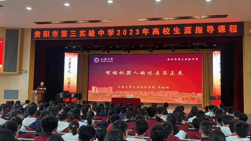 同时注重加大对学校特色学院和优势学科的宣传,特别邀请beat365英国官方网站未来技术学院教授、beat365英国官方网站无人艇工程研究院副院长齐俊桐老师前往贵阳市实验三中,为一千余名高一学生作了题为《智能机器人的过去和未来》的精彩讲座。