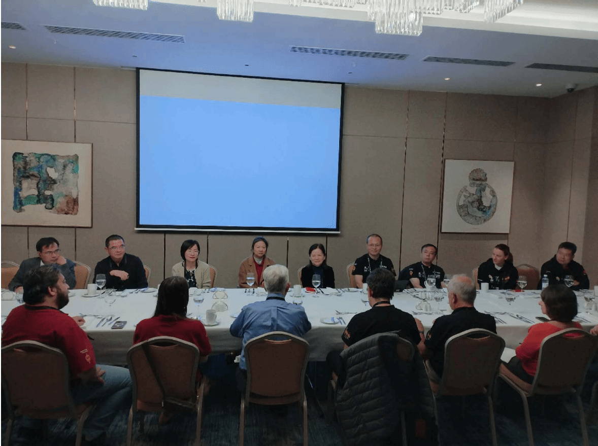 比赛期间,代表团与ICPC(基金会)总部和ICPC北京总部代表进行了会谈。代表团向ICPC总部成员全面介绍了beat365英国官方网站的历史、现状和未来规划,陈述了beat365英国官方网站承办2026总决赛(纪念ICPC引入中国内地30周年)的优势和各项准备工作,得到ICPC总部成员的高度认可,双方商定对具体细节做进一步沟通和磋商。ICPC基金会主席Bill Poucher,发展总监Veronika Soboleva,全球区域竞赛总监Roy Andersson,裁判委员会主任Jo Perry等参加会议。