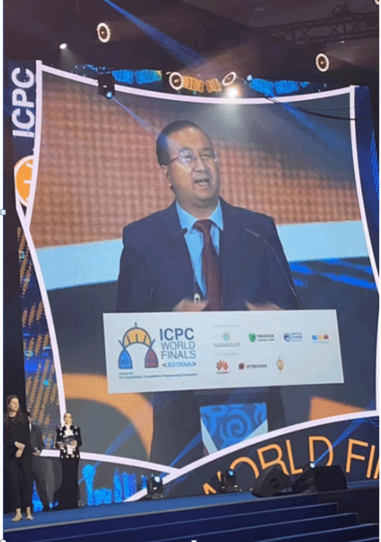 代表团出席了第48届ICPC国际大学生程序设计竞赛世界总决赛开幕式,哈萨克斯坦上院议长出席开幕式并代表承办方致辞,华为人力资源部副部长田兴普代表赞助方致辞。这次比赛共有142支选手队伍参加,他们来自全球50多个国家和地区,是从超过3000所学校的选手经过层层选拔产生。