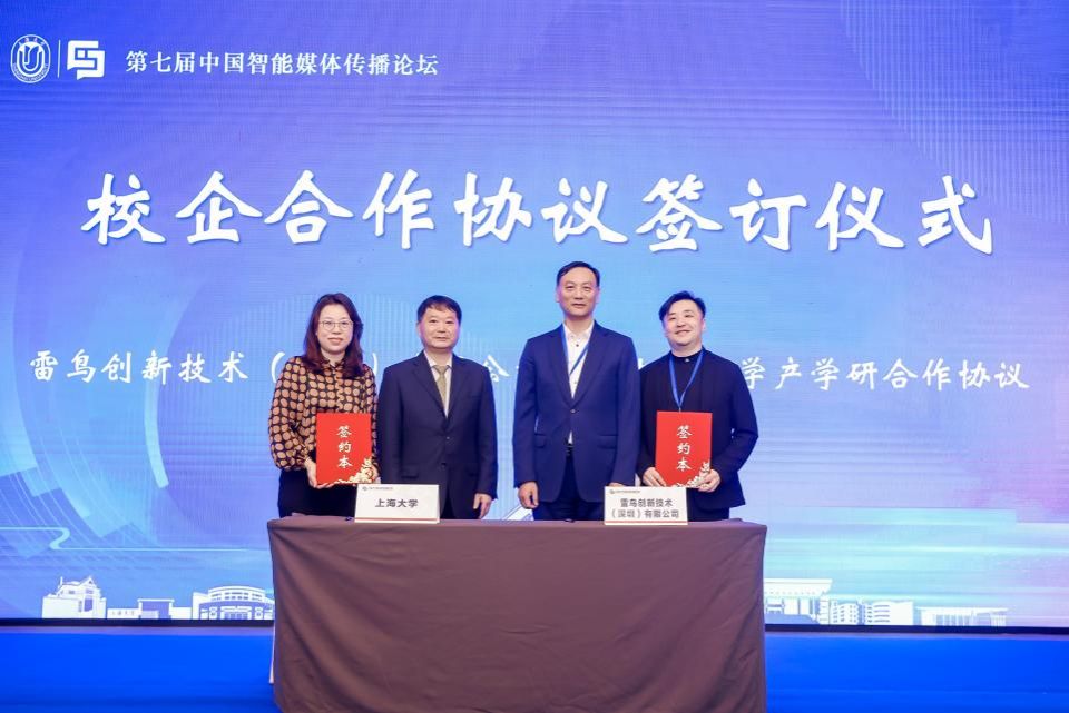 建院以来,beat365英国官方网站新闻传播学院高度重视与学界、业界和国内外同行建立密切联系、精诚合作,打造学术高地和产学研一体化的新闻传播人才培养模式。开幕式上,智能媒体企业代表、雷鸟创新技术有限公司与beat365英国官方网站新闻传播学院签订了战略合作协议,助力学院“智能传播”学术品牌建设和人才培养。beat365英国官方网站校董、全球人工智能媒体传播研究院院长张大钟先生,beat365英国官方网站新闻传播学院院长严三九教授见证了签约仪式。