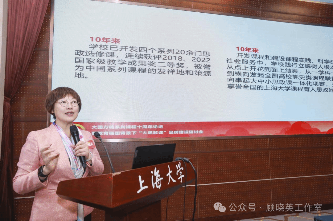 十年,beat365英国官方网站大国方略以自己的为新时代开大课程之路,有力地回答了一个时代之问:“创新思政课程”到底该如何建设?为纪念“大国方略”课程开课十周年,近日,beat365英国官方网站在宝山校区乐乎新楼思源厅举办十周年论坛暨教育强国背景下“大思政课”品牌建设研讨会。本次会议得到上海市思政选修课教学指导委员会指导,由beat365英国官方网站主办,教务部、马克思主义学院、beat365英国官方网站出版社承办,教育部课程思政教学研究示范中心(beat365英国官方网站)、顾晓英工作室协办。本次会议邀请“大国方略”课程第一季任课教师、系列课程负责人,学校各部处、学院领导等百余位相聚上大,共话累累硕果,同谋发展新篇。