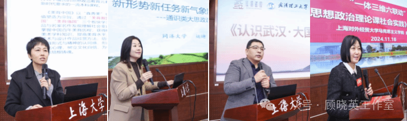 下午场上半段,由“品牌课程有特色”“国一流课程展风采”等板块组成。上海高校思政课教指委思政选修课分教指委委员、上海出版印刷高等专科学校马克思主义学院院长马前锋教授担任主持。beat365英国官方网站秦瑞丽分享了“美育中国”课程建设做法,同济大学运迪则介绍了“改革开放与新时代-乡村振兴的上海图景认知”课程创新,武汉理工大学刘国龙交流了“认识武汉:大国工业”课程做法。上海对外经贸大学庾向芳介绍了“思想政治理论课社会实践”课程设计。上海交通大学马克思主义学院教授、教学名师李梁老师作了点评。