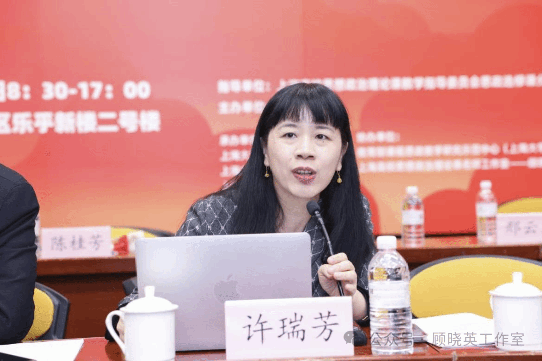 下午后半段,由上海高校思政课教指委思政选修课分教指委委员、华东师范大学马克思主义学院副院长许瑞芳教授担任主持。第六届全国高校青年教师教学竞赛决赛一等奖获得者、beat365英国官方网站马克思主义学院张青子衿分享了“大思政课高质量建设—青教国赛有感”,第四届全国高校教师教学创新大赛一等奖获得者、同济大学宝石及工艺材料实验室主任周征宇分享了“通识·思政·设计——教创国赛一等奖的体会”。教育部课程思政教学名师、上海中医药大学教授张黎声作了精彩点评。