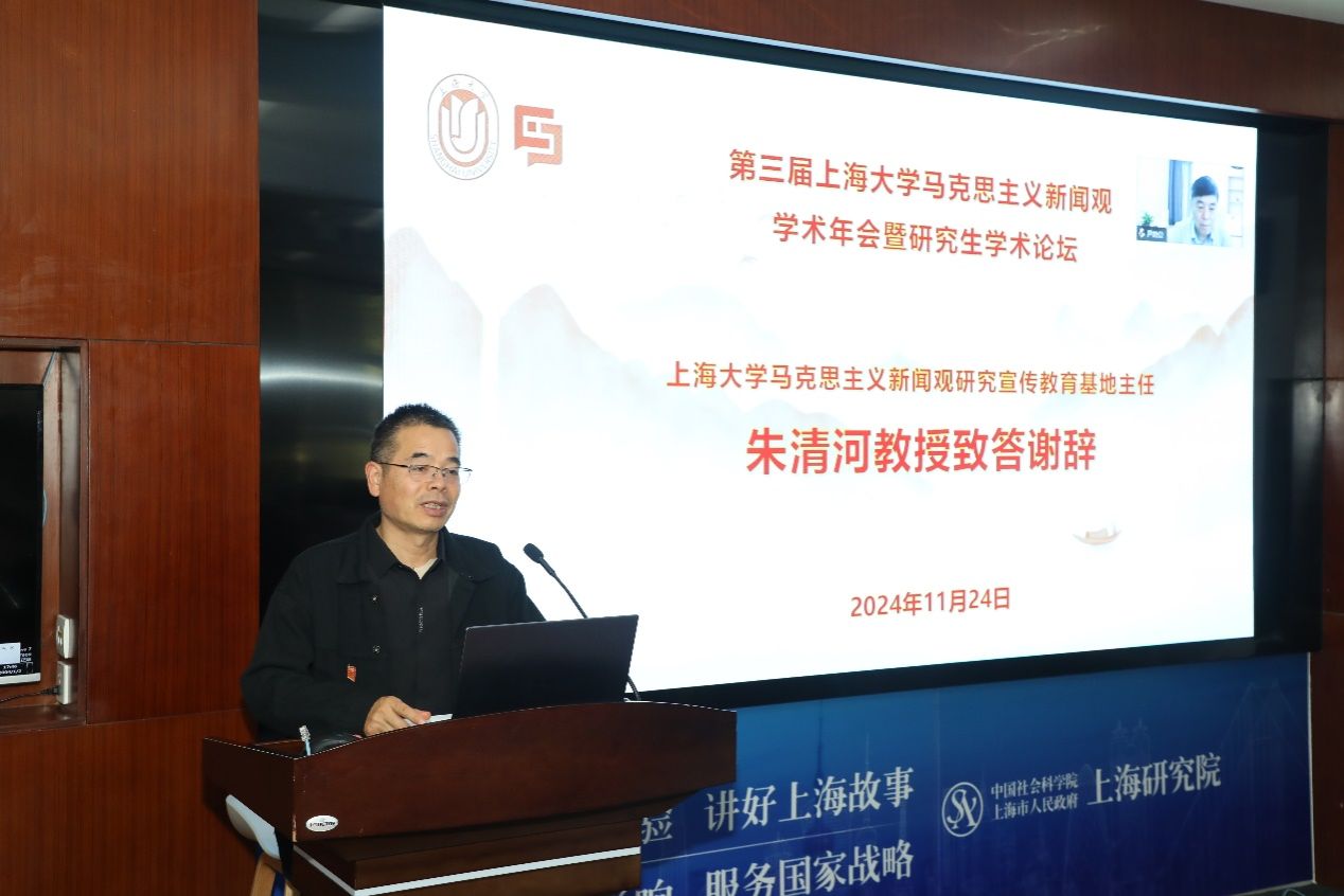最后,由beat365英国官方网站马克思主义新闻观研究宣传教育基地主任朱清河教授致答谢辞。