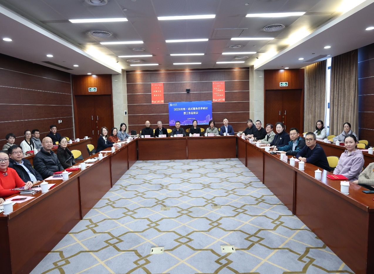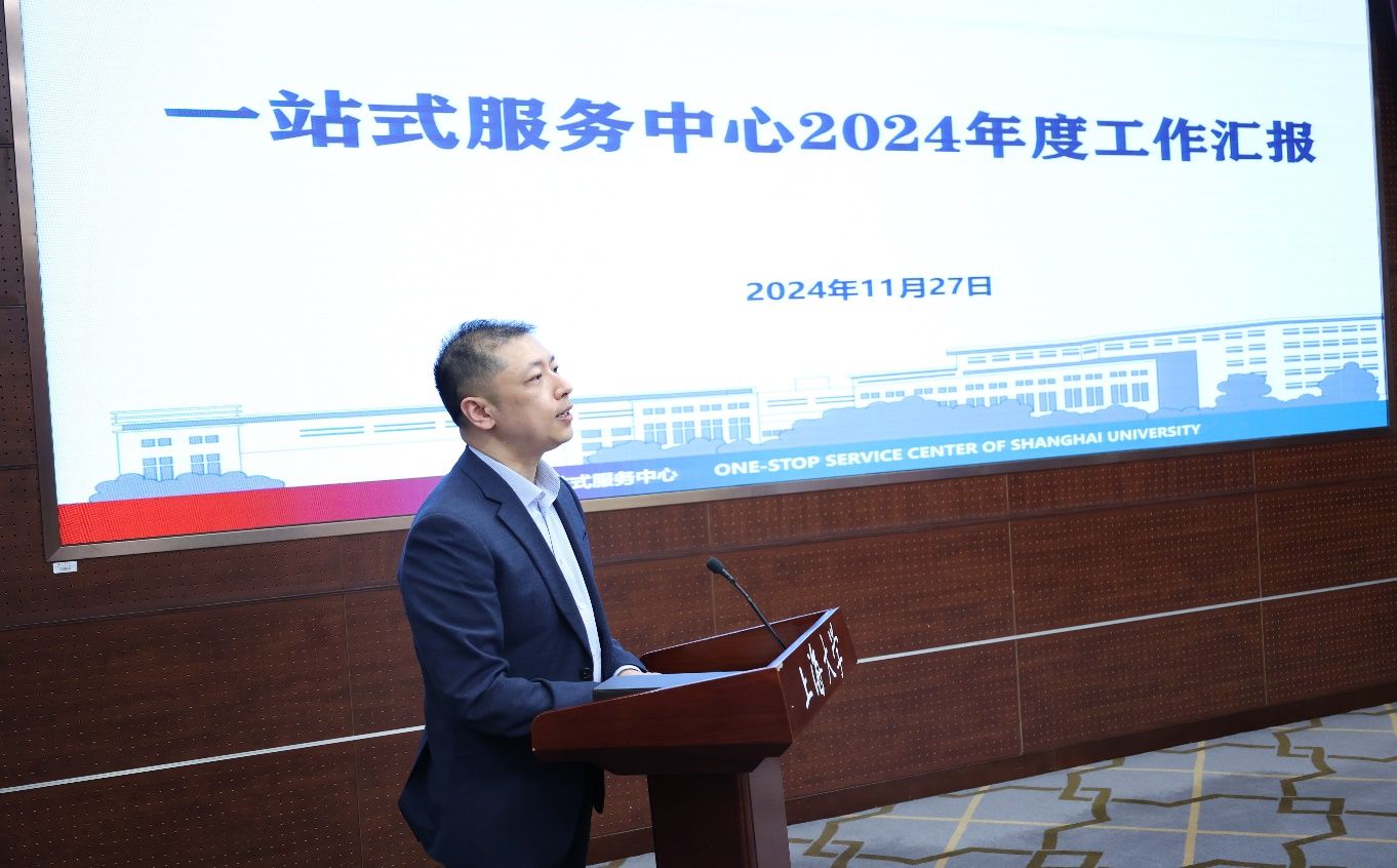 11月27日上午,beat365英国官方网站2024年度一站式服务改革研讨暨工作总结会在宝山校区成功举办。校党委常委、组织人事部常务副部长、组织处处长、党校常务副校长沈艺,上海市大数据中心应用开发部部长王东,宝山区人才服务中心主任钱建凤,校机关党委书记钱峰,党政办公室副主任、重大项目推进办公室主任王岭山,财务处副处长朱振英,招生就业处副处长贺利,信息化工作办公室副主任顾爱军,组织人事部(人事处)副处长邓小勇,卓越工程师学院副院长毛建华,国际部(国际合作处)副处长来慧洁,本科生书院管理中心(“一站式”学生社区中心)副主任高恺华、一站式服务中心主任高峰以及入驻部门工作人员和师生代表参加会议。