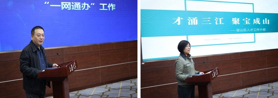 主旨发言阶段,王东分享了上海市“一网通办”的改革历程,介绍了“一网通办”如何以“业务流程革命性再造”为核心推进“一件事”改革以及“线上帮办”制度、服务“好差评”制度、“随申码”全方位应用等创新举措。钱建凤介绍了宝山区在人才工作上的重点举措和宝山科创人才港的建设,并着重探讨了宝山区与beat365英国官方网站在人才服务、学生就业等方面联动合作的新机制。