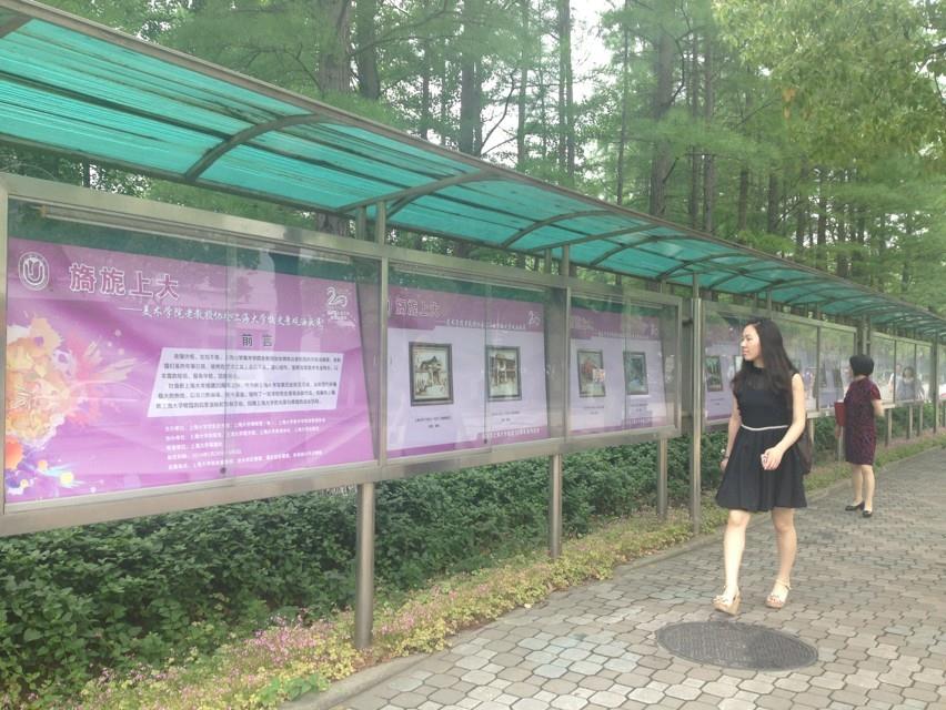 为庆祝新beat365英国官方网站组建20周年,《旖旎上大——美术学院老教授协会beat365英国官方网站校史景观油画展》在校本部宣传栏展出。