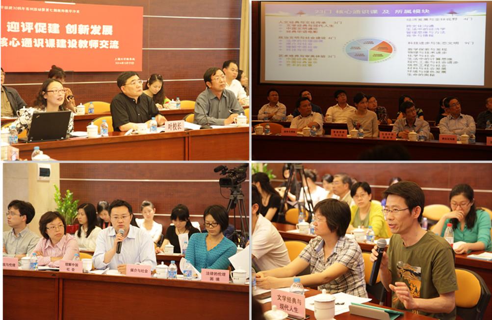 为精心打造核心通识课,进一步完善通识教育课程体系,迎接本科教学审核评估,2014年5月22日下午,教务处组织了第七期教师教学沙龙。来自人文、经管类核心通识课负责人及各课程教学团队、相关学院教学院长、通识教育委员会工作组专家等共聚乐乎新楼思源厅,就核心通识课建设理念及其相关问题进行研讨。叶志明副校长、教务处处长王光东、考评办副主任辛明军等出席。