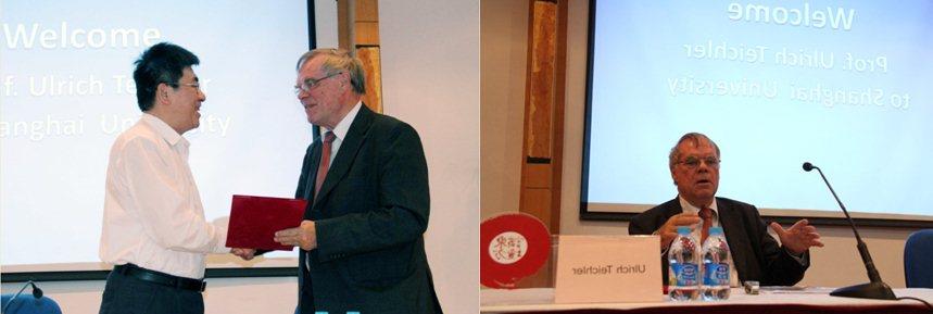 2014年5月23日,德国卡塞尔大学终身教授Ulrich Teichler受学科建设办公室、高等教育研究所邀请来访beat365英国官方网站,作“东方讲坛”系列报告。beat365英国官方网站党委书记于信汇听取了报告,并向Ulrich Teichler授予了beat365英国官方网站“自强教授”称号。