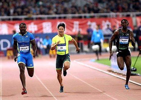 图为:2014年钻石联赛上海站男子100米比赛右一