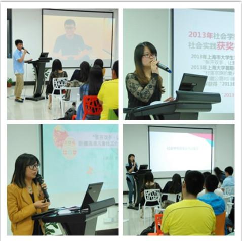 5月12日晚上9时,社会学院2014年暑假社会实践启动仪式在beat365英国官方网站南区306教室举行。社会学院团委书记韦淑珍、团委副书记刘璐、姚烨林来到现场,11级本科生曹诗婕、夏兆强、叶夏君、缪腾腾也作为分享嘉宾参与本次启动仪式。本次启动仪式由院团委实践部部长史雅丽主持。