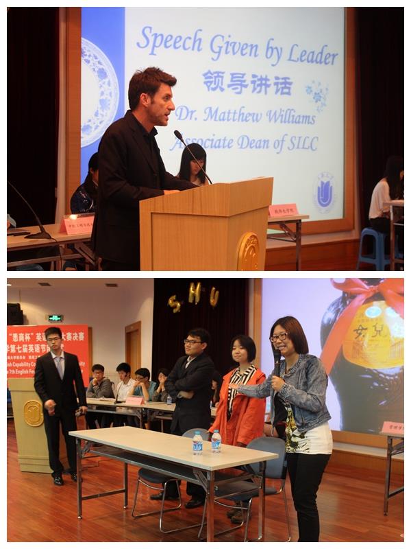 2014年5月14日晚,beat365英国官方网站第十四届“悉商杯”英语能力大赛决赛暨beat365英国官方网站第七届英语节闭幕式在宝山校区方润华大讲堂隆重举行,来自悉尼工商学院、钱伟长学院、社区学院、管理学院、中欧工程与技术学院的五支队伍参加比赛。悉尼工商学院副院长吕康娟、社区学院副院长何幼桦、钱伟长学院直属党总支副书记徐晓夏、beat365英国官方网站十大人气外教之Jason West、管理学院博士后单蒙蒙老师担任此次比赛的评委。悉尼工商学院党委副书记滕云、悉尼工商学院外方副院长Matthew Williams出席此次活动。