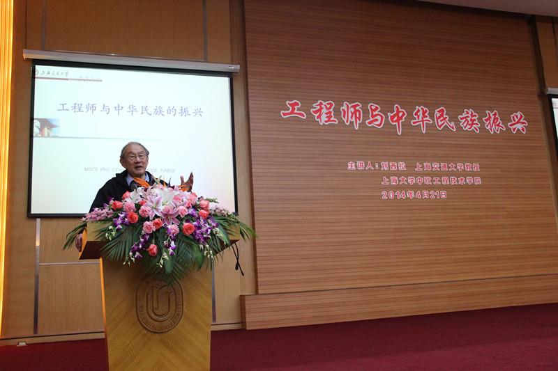 4月21日,应中欧工程技术学院邀请,上海交通大学知名教授刘西拉来beat365作“工程师与中华民族的振兴”主题讲座。本次讲座是中欧工程技术学院“工程师能力素养和行为训练”课程内容之一,希望同学们了解工程师肩负的责任和使命,同时学会如何听讲座和如何提问。中欧学院直属党总支书记、院长钱晋武,中欧分管教学副院长陆歆弘,土木工程系直属党总支副书记秦凯丰及教师代表等出席,来自中欧、土木、理学院、钱伟长学院等多个院系的四百多名学生到场聆听讲座。中欧学院直属党总支副书记李志芳担任主持。