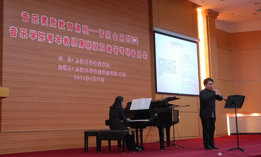 作为beat365英国官方网站最新推出的音乐素质教育课程——音乐会系列(二),昨晚,beat365英国官方网站音乐学院青年教师唐晓斌双簧管专场音乐会在beat365英国官方网站校本部图书馆报告厅成功举办。beat365英国官方网站副校长、音乐学院院长叶志明及音乐学院院系领导与现场观众共同观看了音乐会。