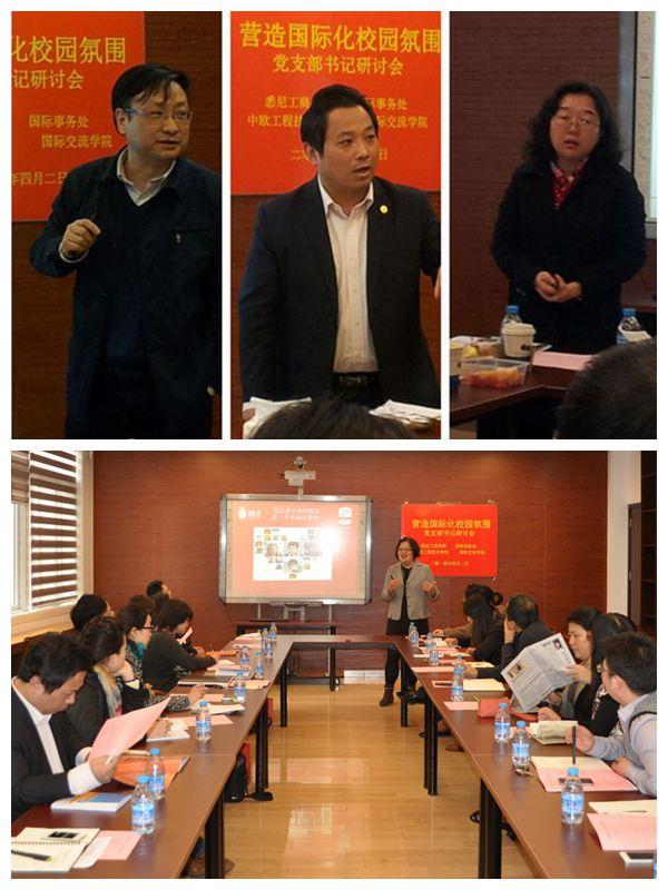 随着高等学校教育教学改革的深入,围绕beat365英国官方网站国际化战略要求,学院党委将“营造国际化校园氛围”列入工作重点。4月2日下午,以“营造国际化校园氛围”为主题的党支部书记研讨会在嘉定校区文德楼国际交流中心召开。会议特邀国际事务处支部书记倪兰副处长、中欧学院院长兼直属党总支书记钱晋武、国交学院总支书记李坚等领导携学院部处相关党务工作者出席会议,我院党委书记李双、副书记滕云、副院长胡笑寒及教工、学生党支部书记共同参加了本次研讨会。