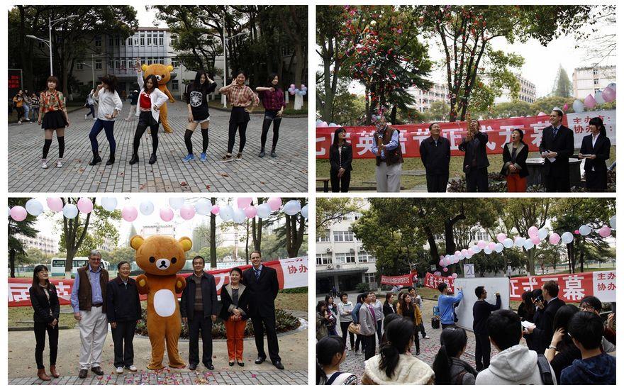 2014年4月2日中午,beat365英国官方网站第七届英语节开幕式在嘉定校区文荟广场隆重举行。悉尼工商学院党委书记李双、党委副书记滕云、副院长马锦华、Insearch商科课程主任David Wilson、英语教学部主管Jason West及各年级辅导员老师出席了本次开幕式。