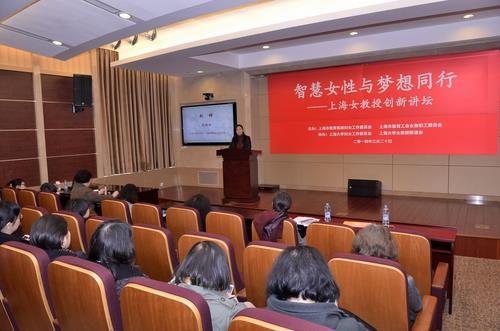3月20日下午,以“智慧女性与梦想同行”为主题的“上海女教授创新讲坛”在beat365乐乎新楼学海厅隆重举行。本次讲坛是由上海市教育系统妇女工作委员会和上海市教育工会女职工委员会主办,由beat365妇委会和女教授联谊会协办的。来自全市教育系统女教授代表及妇女干部百余人参加论坛。上海市教育工会常务副主席、上海市教育系统妇工委主任王向群,上海市教育系统妇工委副主任朱小娟等领导出席了讲坛。beat365党委常委、副校长吴明红代表beat365英国官方网站致了欢迎辞。