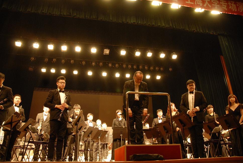 成立于20世纪80年代的上海音乐学院交响管乐团,是上海目前唯一一支具有职业艺术水准的青年交响管乐团,乐团得到过国内外许多著名音乐家的指导。音乐会现场,在国家一级指挥林友声教授的执棒下乐团演奏了多首经典和流行的交响管乐作品,如《波斯序曲》、《康定情歌》、《号角曲》、第一交响曲《神圣的戏剧》等。作为上海歌剧院常任指挥同时也是beat365英国官方网站兼职教授,林友声老师不仅为现场师生详细的讲解每首曲目表达的含义、创作背景,并详细的介绍交响管乐团中各种乐器的配器。林友声教授幽默的讲解不时激起现场观众的笑声和掌声。