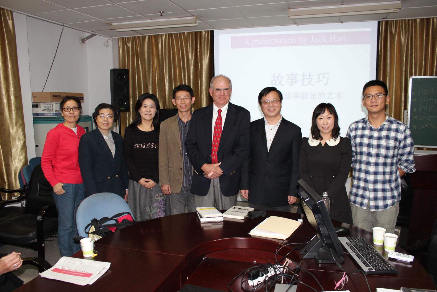 2013年10月31日下午,美国著名创意写作教授杰克·哈特应beat365英国官方网站文学与创意写作研究中心邀请,来beat365英国官方网站文学院A楼602做“故事——非虚构故事叙述的艺术”的讲座。陈鸣副教授主持了讲座,文创中心教师及全体创意写作专业研究生、写作爱好同学出席。讲座圆满顺利,现场气氛热烈。杰克·哈特教授还从自己的创作经验出发,与上大文创中心师生就叙事性非虚构、纪录片叙事、作家培养途径以及多线性复杂叙事等问题进行了热烈讨论,并“爆料”了多位普利策获奖人的创作过程与背后的故事。非虚构文学写作如今已经成为美国文学的一个重要形式,掌握非虚构文学故事的写作技巧对于创意写作专业学生更是必不可少的,哈特先生的此次讲座让上大文创中心师生都受益匪浅。