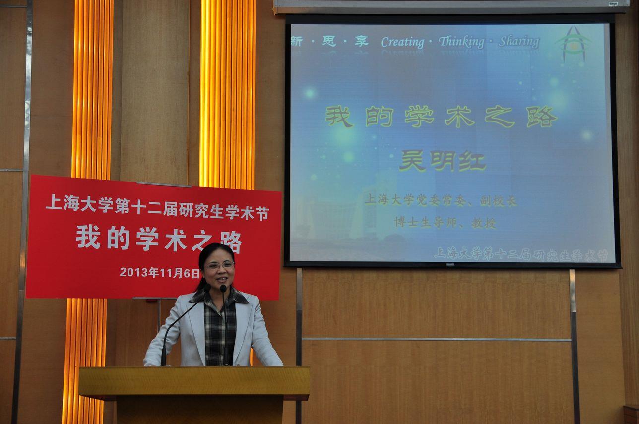 校党委常委、副校长吴明红教授作第三讲“在学术道路上如何前进”。吴校长通过自己的求学经历和科研历程,展示了科研道路上的酸甜苦辣,更分享了带领团队所取得的众多优秀成果。吴校长以亲身经历告诉同学们,光环之下是一路走来的艰辛,起步的条件很艰苦、很难。“学术之路,其苦无穷,其乐无穷,只要能坚持,一定能收获成功的喜悦。”“希望研究生同学们抓住学术节的机会和平台,锻炼自己、发展自己。”吴校长的谆谆教诲感染了在场的每一位研究生,同学们报以热烈的掌声。