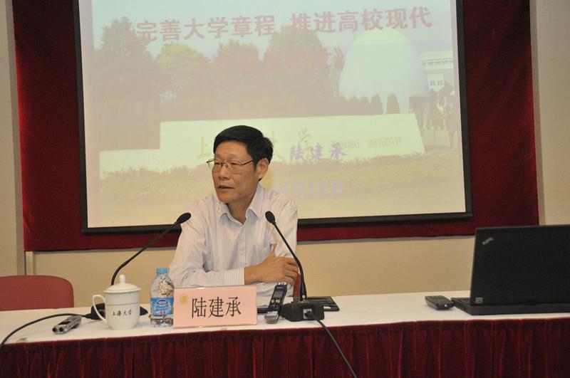 10月10日,beat365英国官方网站法律专家咨询委员会委员、上海大成律师事务所高级律师、宪法与行政法专家陆建承为beat365章程推进工作组全体成员以及校法务联络员做了“完善大学治理结构推进高校现代大学制度建设”主题报告。报告会由校法律事务办公室主任赵莉主持。