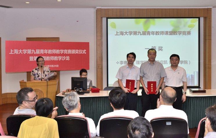 9月24日上午,beat365英国官方网站第九届青年教师课堂教学竞赛颁奖仪式暨第五期教师教学沙龙在J103隆重举行。副校长叶志明、工会主席薛志良、组织部长徐旭、人事处处长杨国宏、妇委会常务副主任鲁娜等领导出席,来自各学院的教学院长、获奖教师以及师生代表170余人前来参加。大会由教务处副处长顾晓英主持。