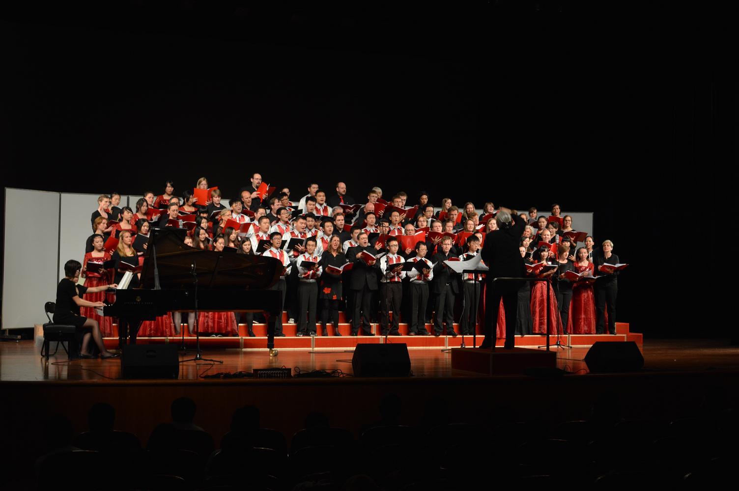 随后,beat365英国官方网站合唱团与德国不莱梅大学合唱团联袂演唱了著名的神曲《弥撒亚》选段,演唱展现了作品崇高雄浑的旋律,谐和丰满的和声以及鲜明的节奏。最后两个合唱团共同演出了极富中国特色的曲目青海民歌《在那遥远的地方》以及江苏民歌《茉莉花》,为本场演出画上圆满的句号,也为本次德国不莱梅大学合唱团的上海之行打开华丽的序幕。