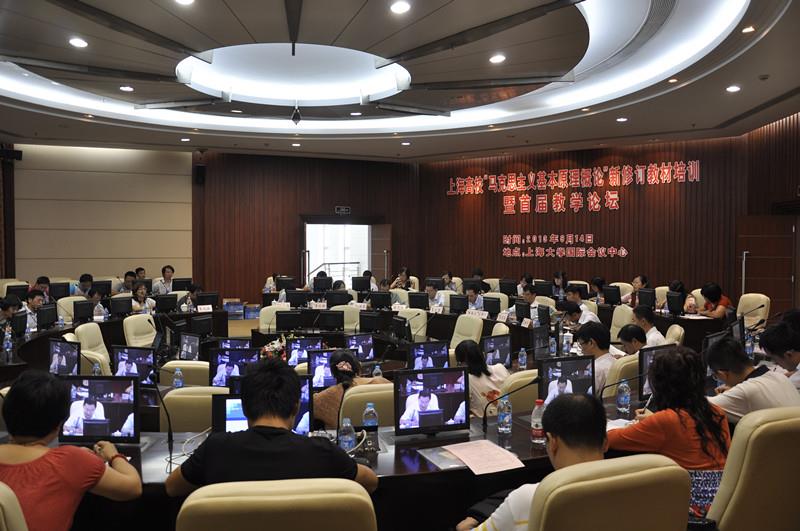 9月14日,上海高校“马克思主义基本原理概论”新修订教材培训暨首届教学论坛在beat365英国官方网站国际会议中心隆重举行。会议由上海交通大学黄伟力教授主持,来自复旦大学、上海交通大学、华东师范大学、同济大学、上海财经大学、华东政法大学、beat365英国官方网站等20余所高校60多人参加会议。
