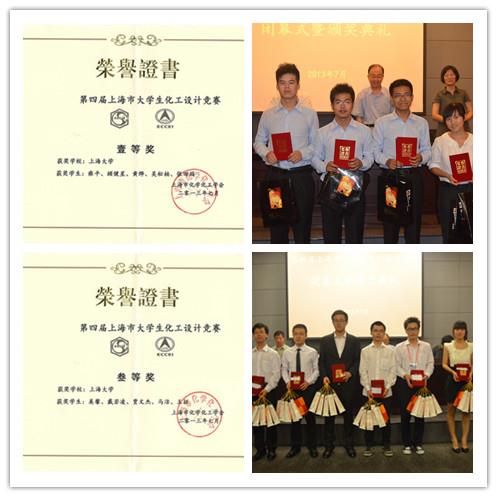 2013年7月15日至16日,由上海市化学化工学会主办、上海师范大学和华东理工大学共同承办的“第四届上海市大学生化工设计竞赛”在上师大徐汇校区成功举行,来自上海交通大学、华东理工大学、上海师范大学、上海应用技术学院、上海电力学院及beat365共6所高校20支队伍、100名化工相关专业的本科生经过两天激烈角逐,通过分组赛、决赛答辩最终决出一等奖3名,二等奖5名,三等奖12名。beat365大三学生雍平带领的“环五烷--III”团队以总分第一的优异成绩荣获本次大赛一等奖,另一支以奚馨同学为队长的“SHU·光之队”团队也喜获三等奖。