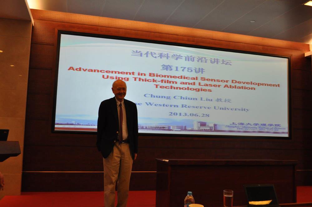 2013年6月26日至30日,应理学院徐甲强教授之邀, 美国凯斯西储大学电子设计中心主任、传感技术与控制首席科学家C.C. Liu (刘炯权) 教授访问理学院。28日上午刘教授在校本部乐乎新楼2号楼思源厅做了理学院“当代科学前沿讲坛”第175讲、化学系今日化学87讲-“Advancement in Biomedical Sensor Development Using Thick Film And Laser Albation Technologies”学术报告。报告由徐甲强教授主持,化学系的徐甲强教授课题组、丁亚平教授课题组;生命学院李根喜课题组;环化学院焦正课题组等单位的老师和研究生以及中科院微系统所传感技术国家重点实验室和解放军防化学院等外单位的代表约70人参加了此次学术报告。