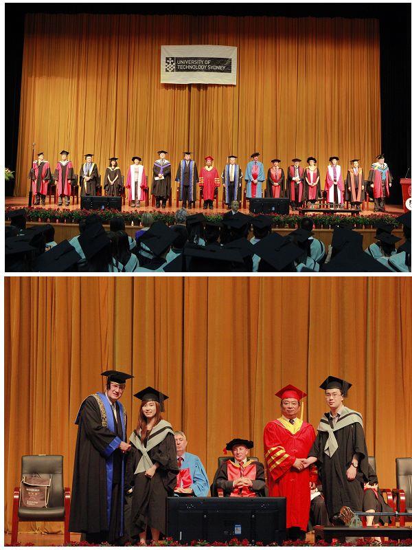 管风琴乐曲声中,身着庄严学袍的中澳双方校领导入场,全场来宾起立鼓掌,演奏中澳两国国歌后,典礼正式开始。毕业典礼全程使用英语并严格遵循隆重庄严的西方毕业典礼礼仪。代表悉尼科技大学的权杖插在主席台前端。典礼由悉尼科技大学校长Professor Ross Milbourne主持。