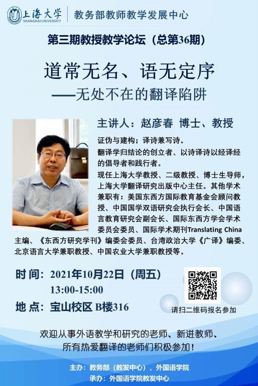 beat365英国官方网站教务部教师教学发展中心第三期教授教学论坛(总第36期)道常无名、语无定序——无处不在的翻译陷阱